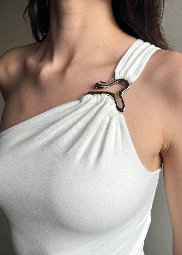 Body un solo hombro con drapeado y avío. Confeccionado en modal soft.