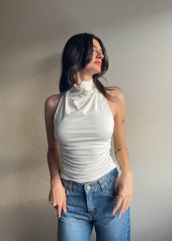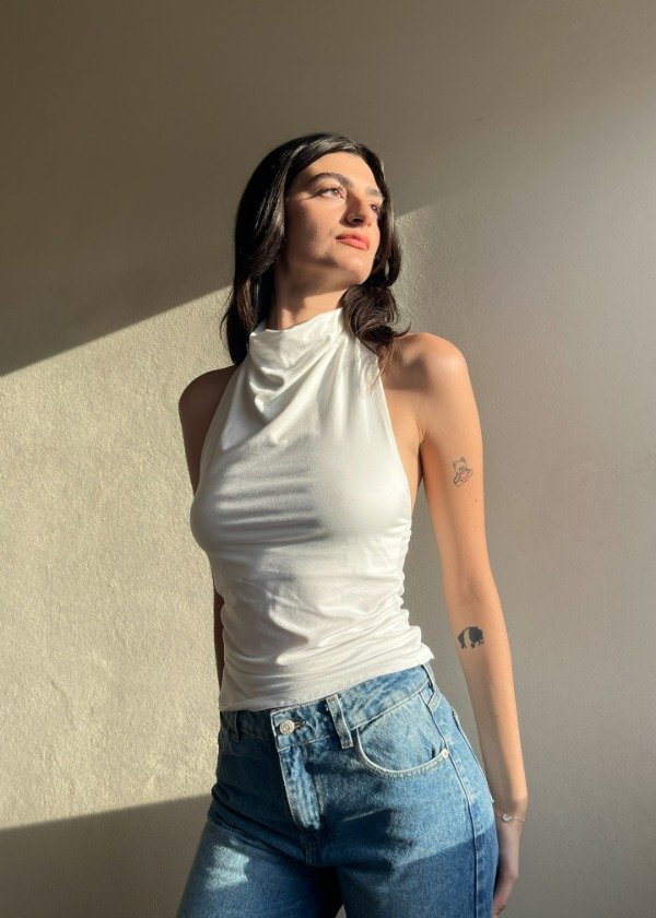 Top escote buche a la base (semi tortuga), espalda semi descubierta. Confeccionada en modal soft.