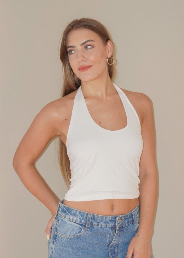 Top escote en U cuello tipo halter, confeccionado en modal soft.